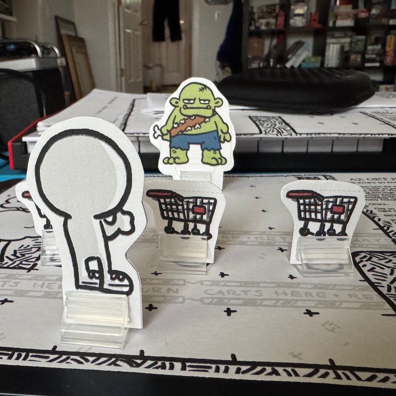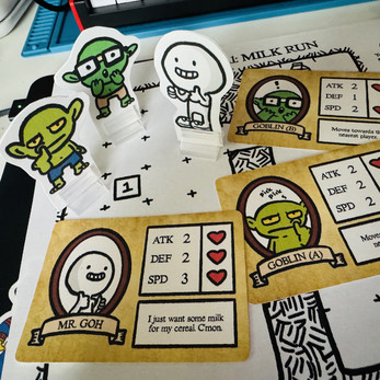 - Make sure to have the included cards for your character and enemies handy.