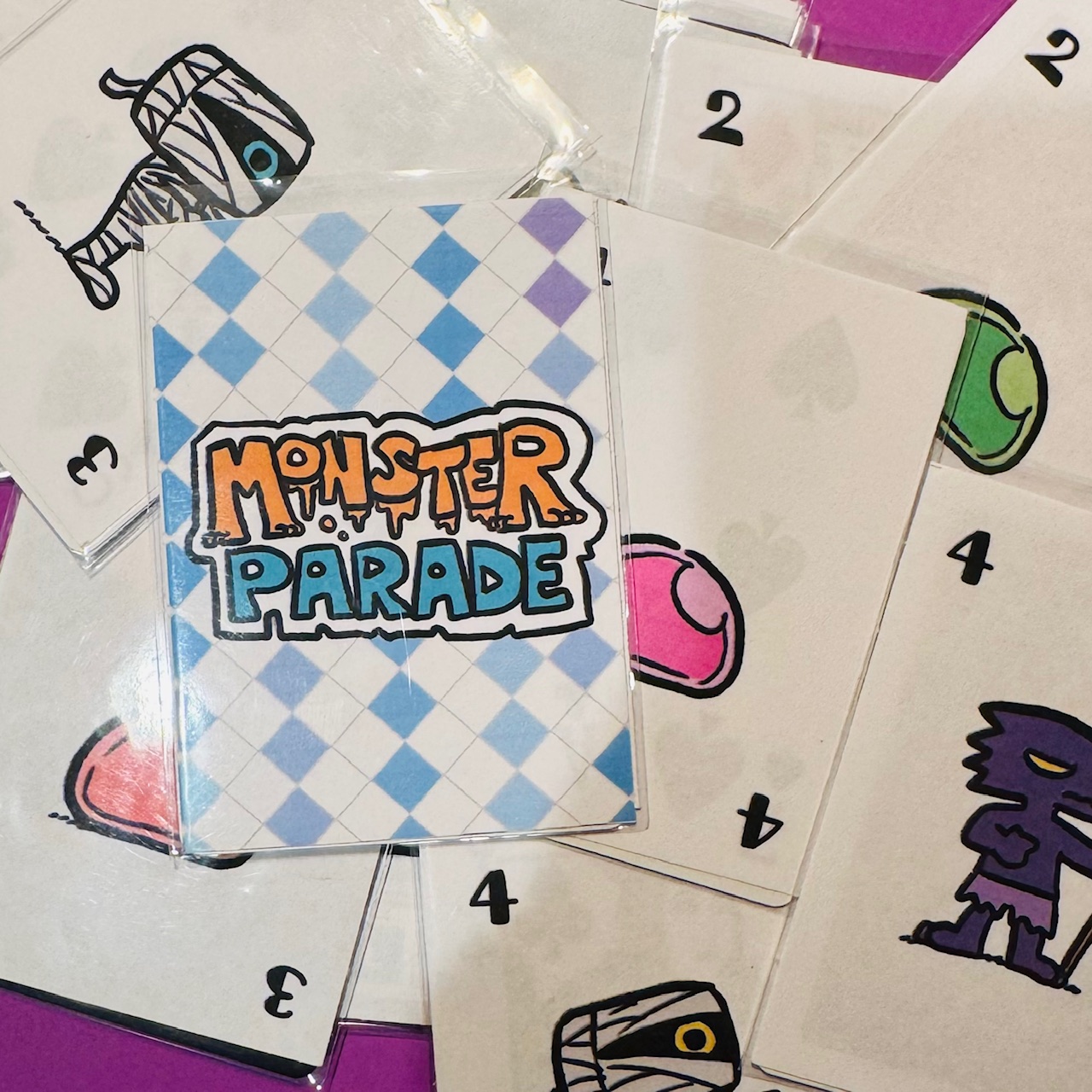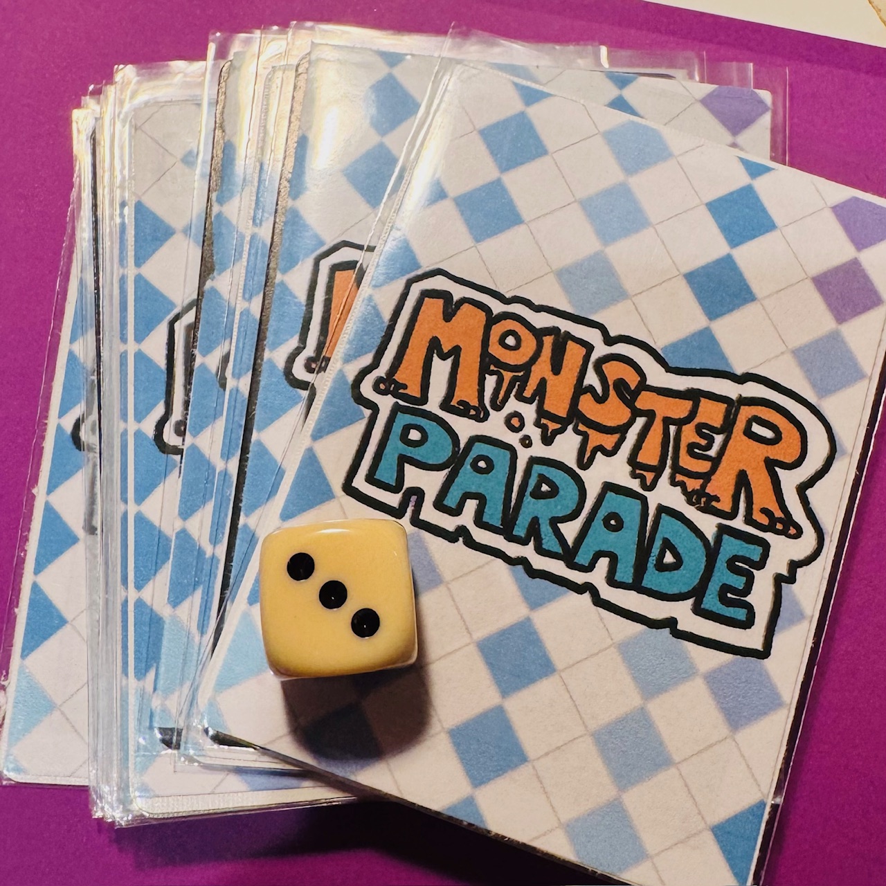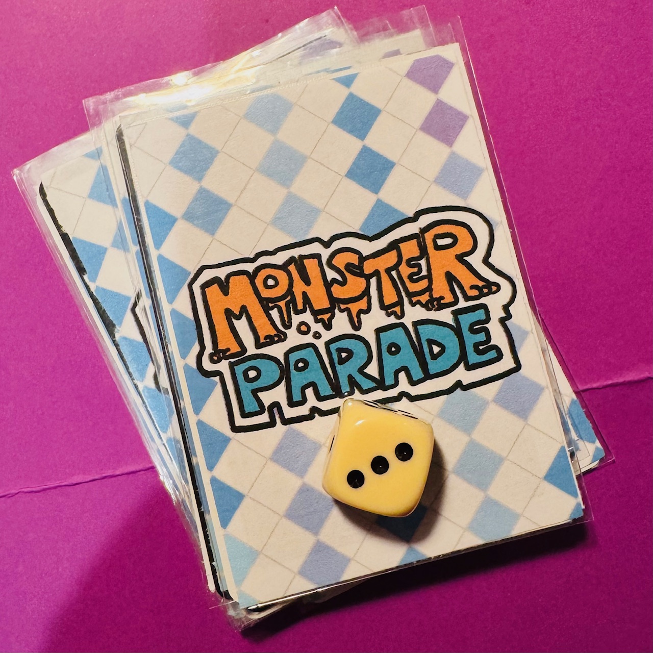 In Monster Parade, two players race to get rid of their monsters by sending them out in order restricted by a constantly changing Parade Size Limit. Play a monster that’s too big and you’ll have to pause the parade. Play the same monster twice and you trigger an Encore, choosing whether to lock the limit or roll for a new one and continue your turn.