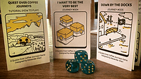 Today is the day! Quests Over Coffee Journeys V2 is out for everyone to play... and just in time for spooky season! Game includes 3 zines: how to play, I Want To Be the Very Best, and Down By The Dock...